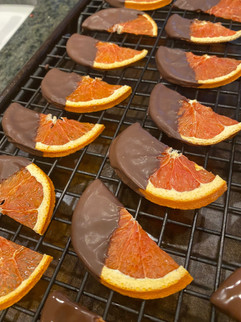 Cookies from top to bottom, left to right: Mexican Wedding Cakes, Chocolate Dipped Cara Cara Orange slices, Persimmon Walnut, White Chocolate Chip Macadamia Nut, Chocolate Marshmallow Popcorn, Cherry Pistachio Biscotti, Molasses Spice Diamonds, Chocolate Pretzels, Almond Shortbread with Sea Salt, Aunt Fran's S's and O's. Not pictured Italian Chocolate Walnut.
